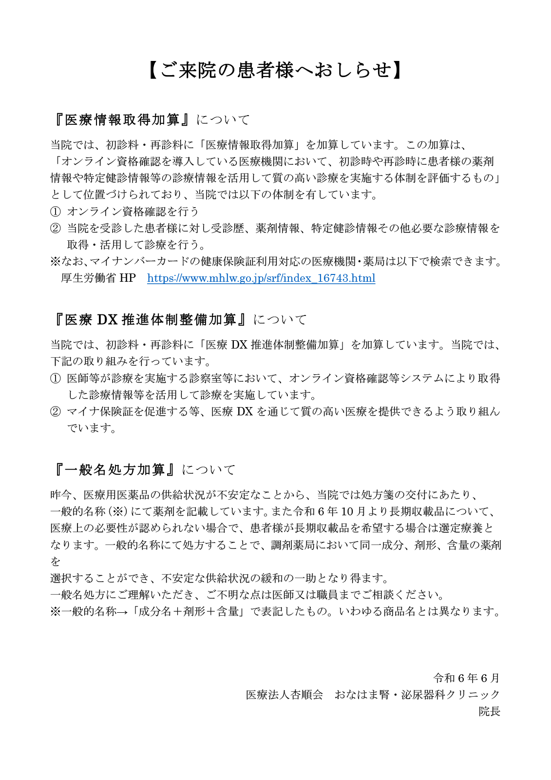 院内掲示のお知らせ